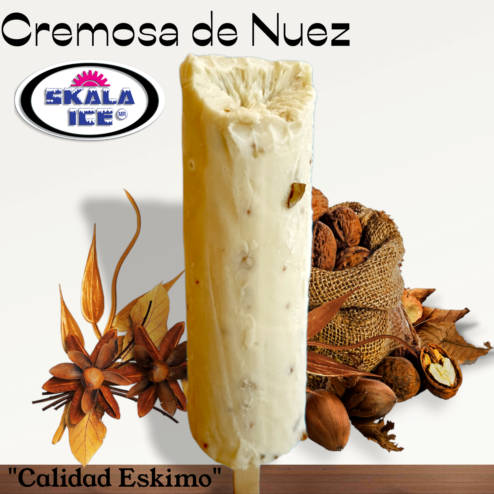 Exquisita paleta de leche sabor nuez ó fresa de agua con chantilly